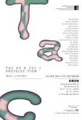 München 04.07.2022Vom 05.07. - 17.07.2022 kann die Öffentlichkeit unter dem Titel TACKER / PRESELECTION in der GALERIE DER KÜNSTLER*INNEN die Schau dieser Vorauswahl besuchen; h...